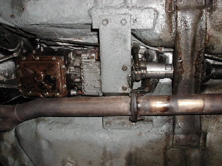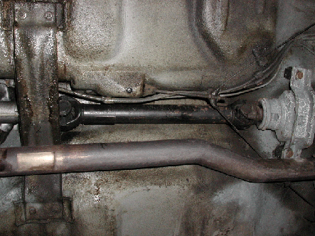 Umbaumaßnamen.So musste ich die Getriebeaufhängung komplett ändern. Die Original-Halter wurden herausgetrennt und durch Eigenkonstruktionen ersetzt. Das Schaltgestänge des Getriebes musste gekürzt werden und der Schaltknüppel wanderte etwas nach vorn. Die Kardanwelle ist auch eine Sonderanfertigung und wurde von der Firma Elbe Gelenkwellenservice in Köln nach meinen Angaben gefertigt. |